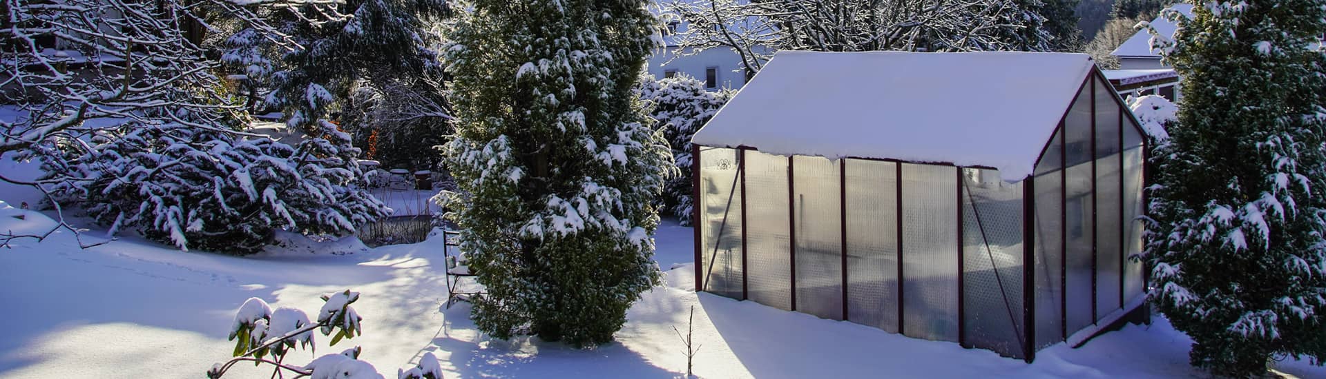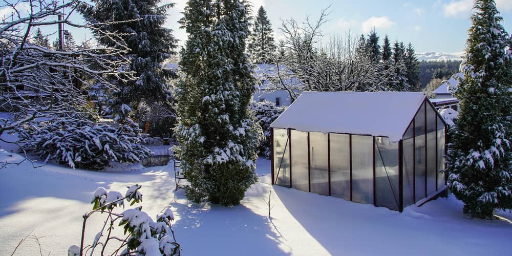 Een verwarmde kas beschermt gevoelige planten tegen vorst.